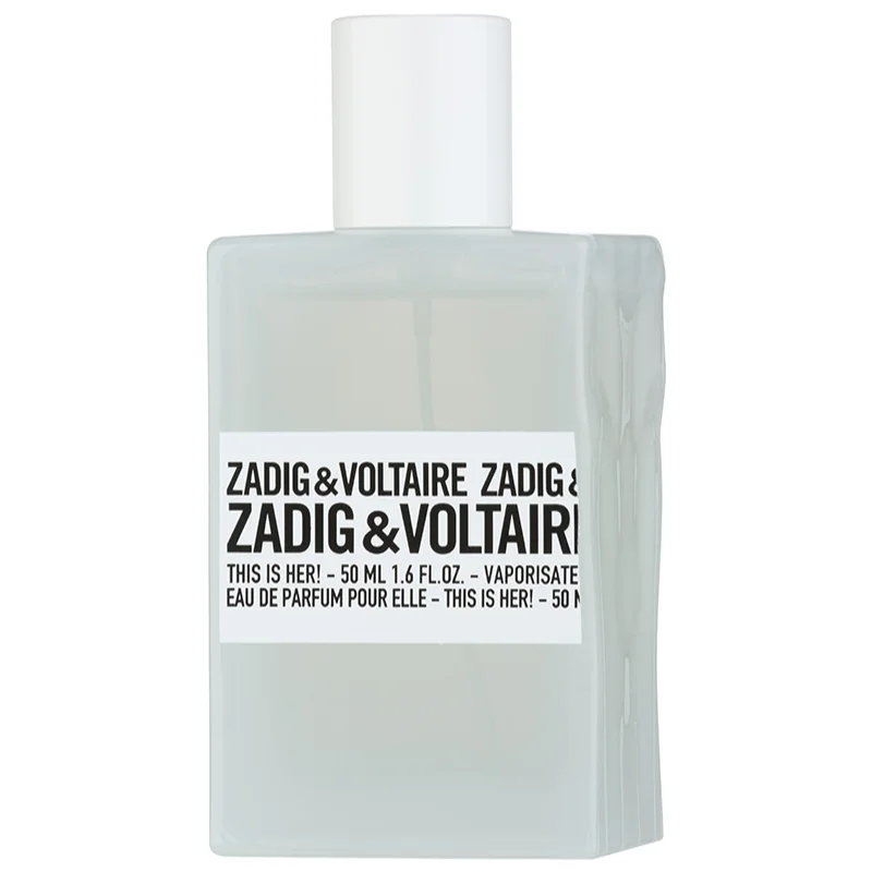 En blanc. Vraie. Elégante parisienne vêtue de sensualité soie et cachemire. Cette jeune beauté vagabonde sème avec désinvolture un bouquet floral de jasmin sambac illuminé par la baie rose. Une douceur au cœur rock mi châtaigne mi vanille. Libre comme ses looks, sa féminité affirme en fond l’intensité d’un bois puissant, onctueux et un peu lacté : le santal, signature de Zadig & Voltaire. Découvrez l’eau de parfum This is Her!